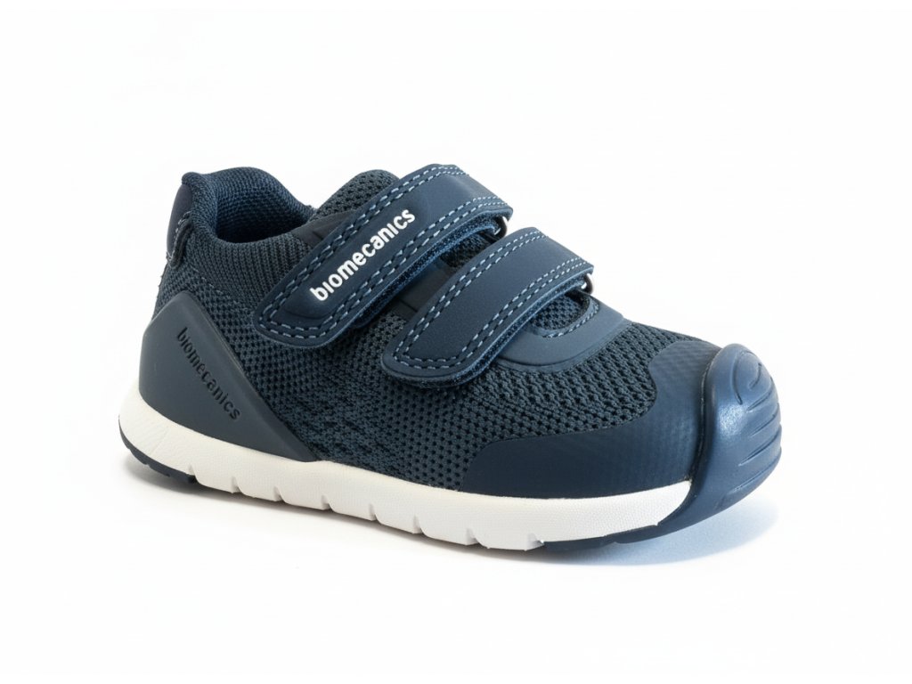 Dětské tenisky boty Biomecanics . Vynikají opravdu příkladným zpracováním a patentovaným opatkem. Speciální Biomecanics opatek je za achilovkou snížený a neomezuje tak přirozený pohyb nohy, přičemž stále plní svoji funkci a zabraňuje tak vtáčení paty - šmajdání. Vhodné i na první krůčky.