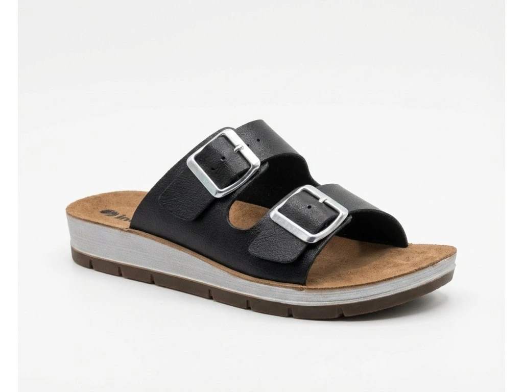 Pohodlné dámské pantofle na léto. Pantofle Inblu mají měkkou koženou stélku která se dokonale přizpůsobí anatomické struktuře chodidla. Tmavá barva a jednoduchost jsou hlavními tématy letní kolekce italské značky Inblu.