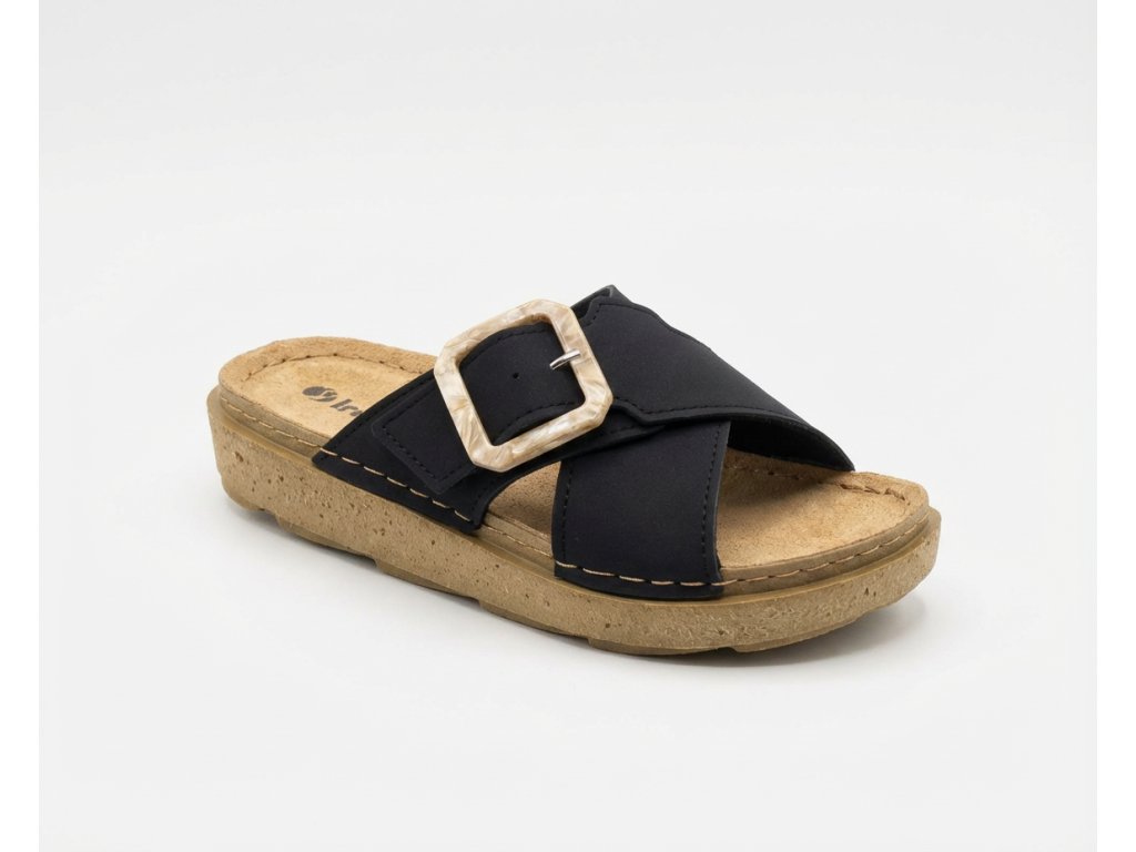 Pohodlné dámské pantofle na léto. Pantofle Inblu mají měkkou koženou stélku která se dokonale přizpůsobí anatomické struktuře chodidla. Tmavá barva a jednoduchost jsou hlavními tématy letní kolekce italské značky Inblu.