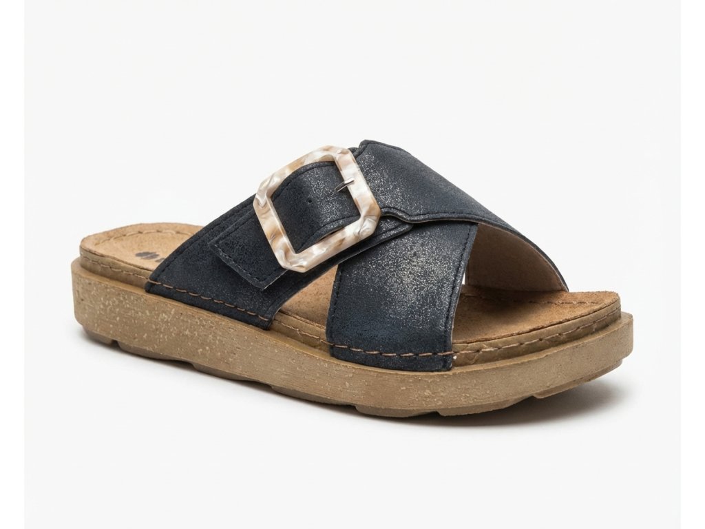 Pohodlné dámské pantofle na léto. Pantofle Inblu mají měkkou koženou stélku která se dokonale přizpůsobí anatomické struktuře chodidla. Černá barva a jednoduchost jsou hlavními tématy letní kolekce italské značky Inblu.