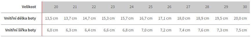 Velikostní tabulka