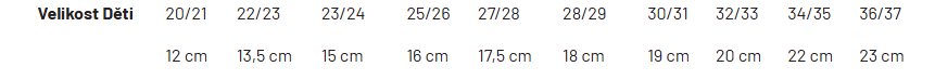 Doporučujeme změřit délku chodidla a vybírat dle uvedených centimetrů pod velikostmi v tabulce. V případě rozmezí mezi velikostmi zvolte větší.