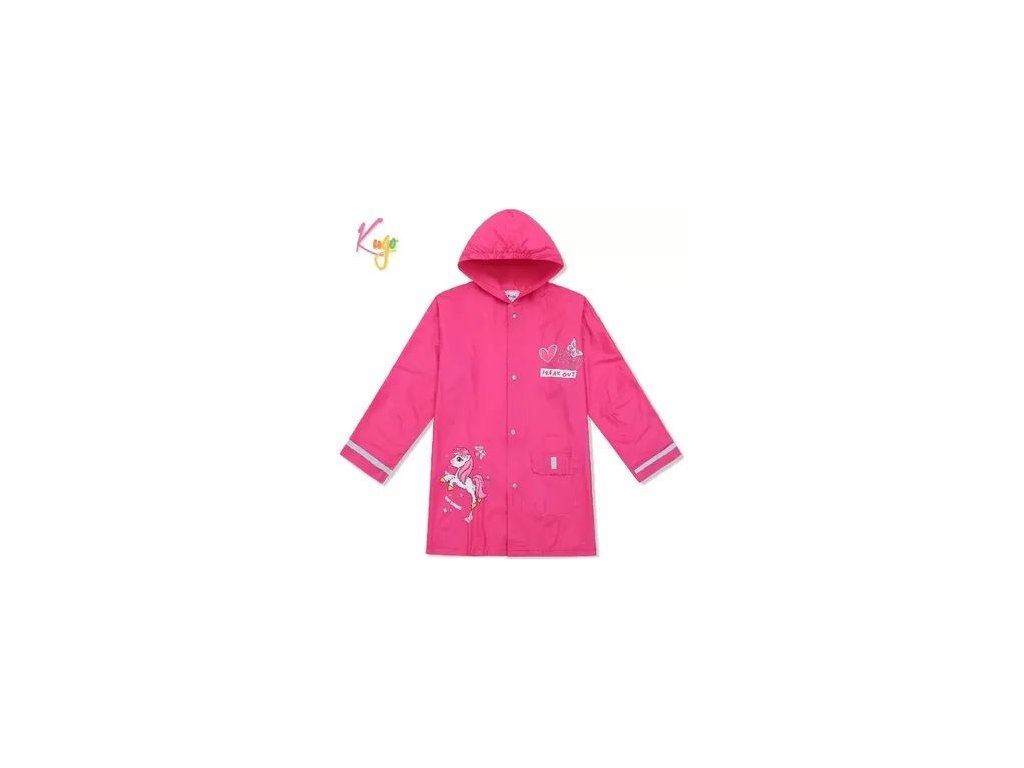 Stylová pláštěnka Kugo je ideální pro dívky. Vyrobena z odolného materiálu, který poskytuje spolehlivou ochranu před deštěm. Pláštěnka má kapuci, zapínání na druky a dvě přední kapsy. Reflexní prvky na rukávech a zádech zajišťují lepší viditelnost za šera.